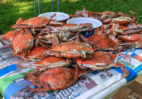 Unwrap this early Christmas present! (2) Dozen Steamed & Spiced Female Sook Medium Blue Crabs, measuring 5.5"-6". Your order arrives in a custom crab cooler with the perfect amount of gel packs for a delicious delivery!
