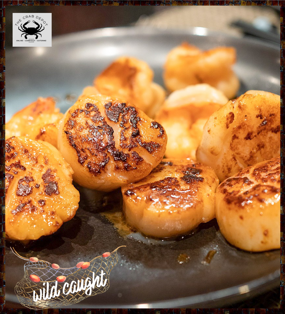 Make sure to treat these carefully dredged scallops with respect as you quickly pan-sear them. First, know that your special catch from Crab Depot includes the finest “dry” scallops, which means that they haven’t received any processing for preserving the meat. This natural state allows the scallop to sear into a masterpiece with caramelization of the glucose in the meat that gives it a natural sweetness. Nantucket scallops naturally plate with a rich brown crust and a tender moist inside.