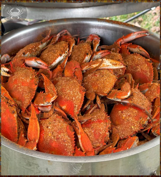 Get cracking with a steamed and spiced dozen of Blue Crabs, measuring 5"-6". Crab Depot's Crew sizes (6) small and (6) medium for a perfect dozen to capture the taste of the bay with the naturally sweeter bay crabs. Your order arrives in a custom crab cooler with an exact amount of gel packs to keep your dinner fresh. (expires 4/12/26)